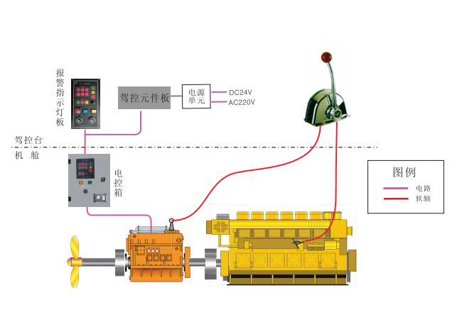 驾控台、机舱设有组合报警灯及艉轴的状态指示